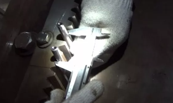 5、用游標卡尺測量新齒條與舊齒條的齒距如圖。記下讀數(shù)。為第二次讀數(shù)。保證第二次讀數(shù)比第一次讀數(shù)小0.2mm。